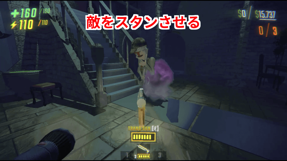 1TRANQ GUNなどで敵をスタンさせる
