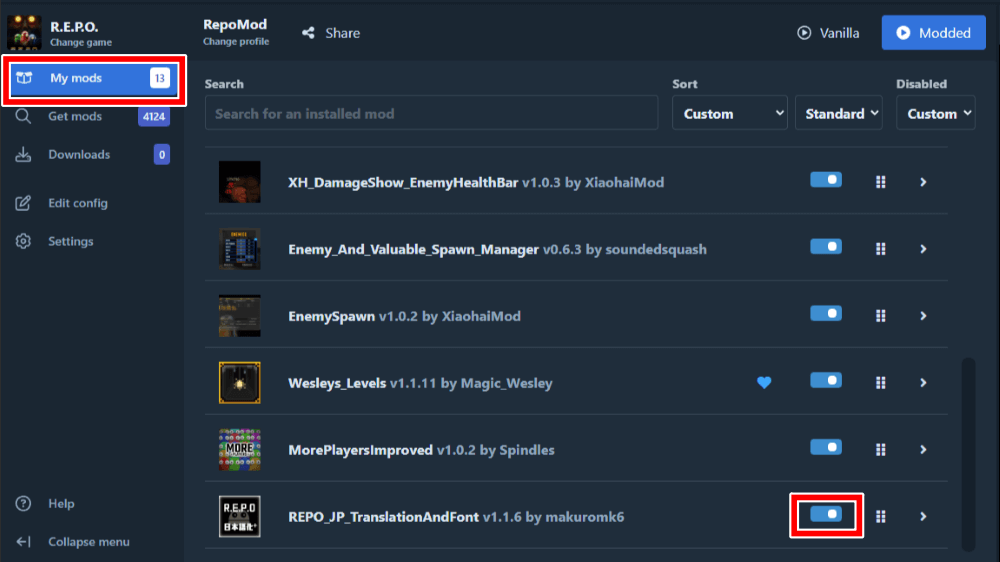 3「My mods」に移動してMODを有効化