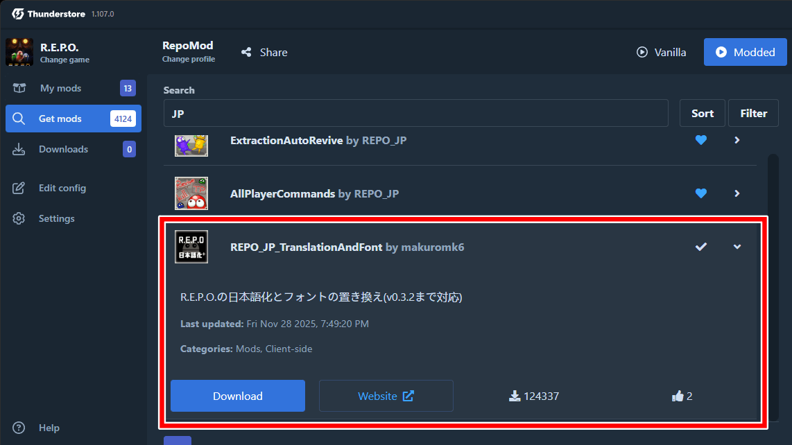 | 2 | REPO JP TranslationAndFontをダウンロード |