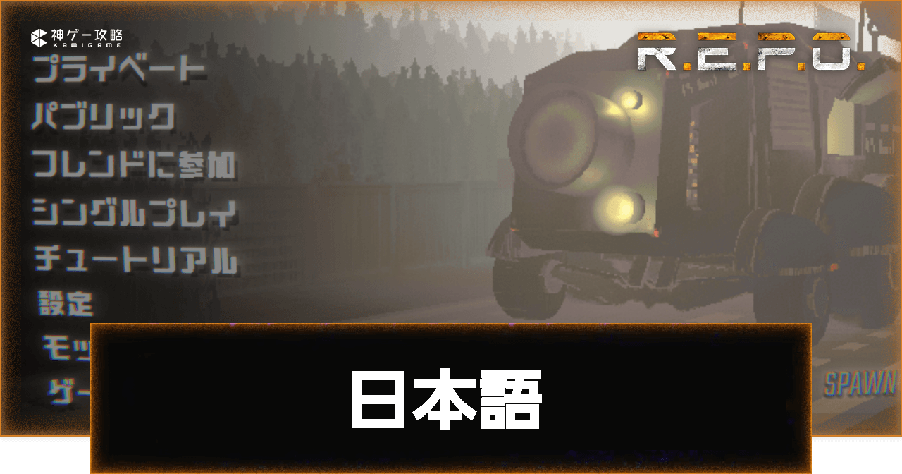 REPO(レポ/R.E.P.O.)の「日本語設定」を解説。REPOの日本語設定の実装状況や日本語化MODの入れ方についても掲載しています。