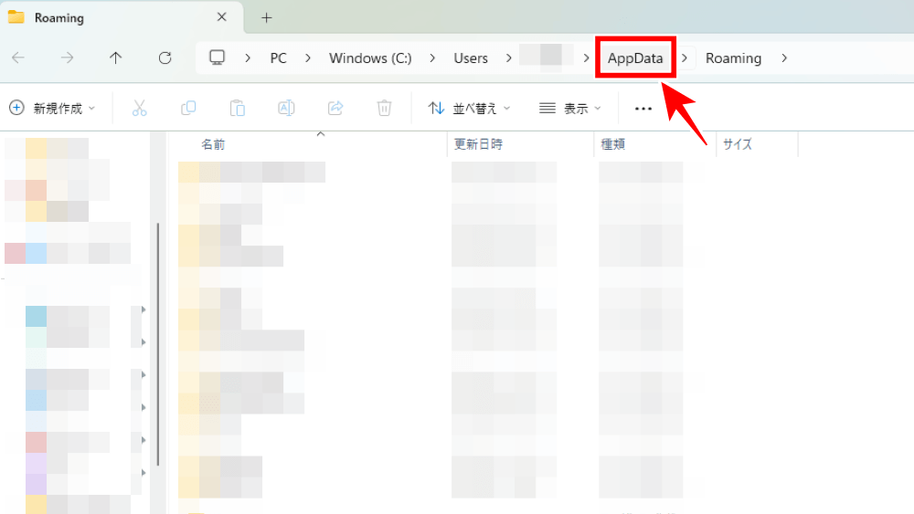 | 1 | 検索バーに「%appdata%」と入力しフォルダを開く |