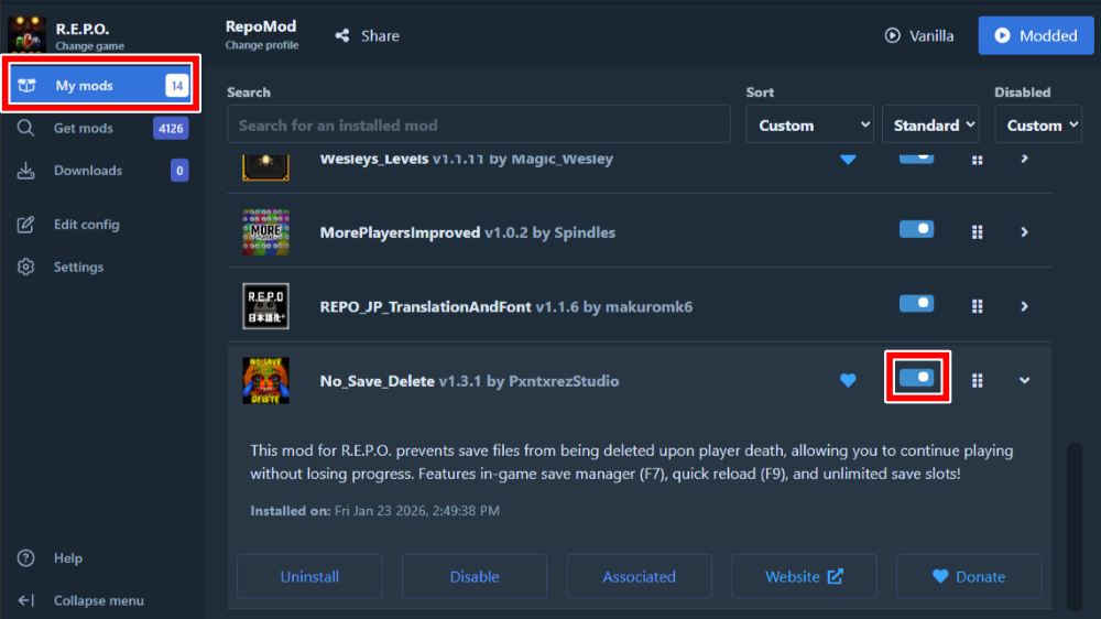 3「My mods」に移動してMODを有効化