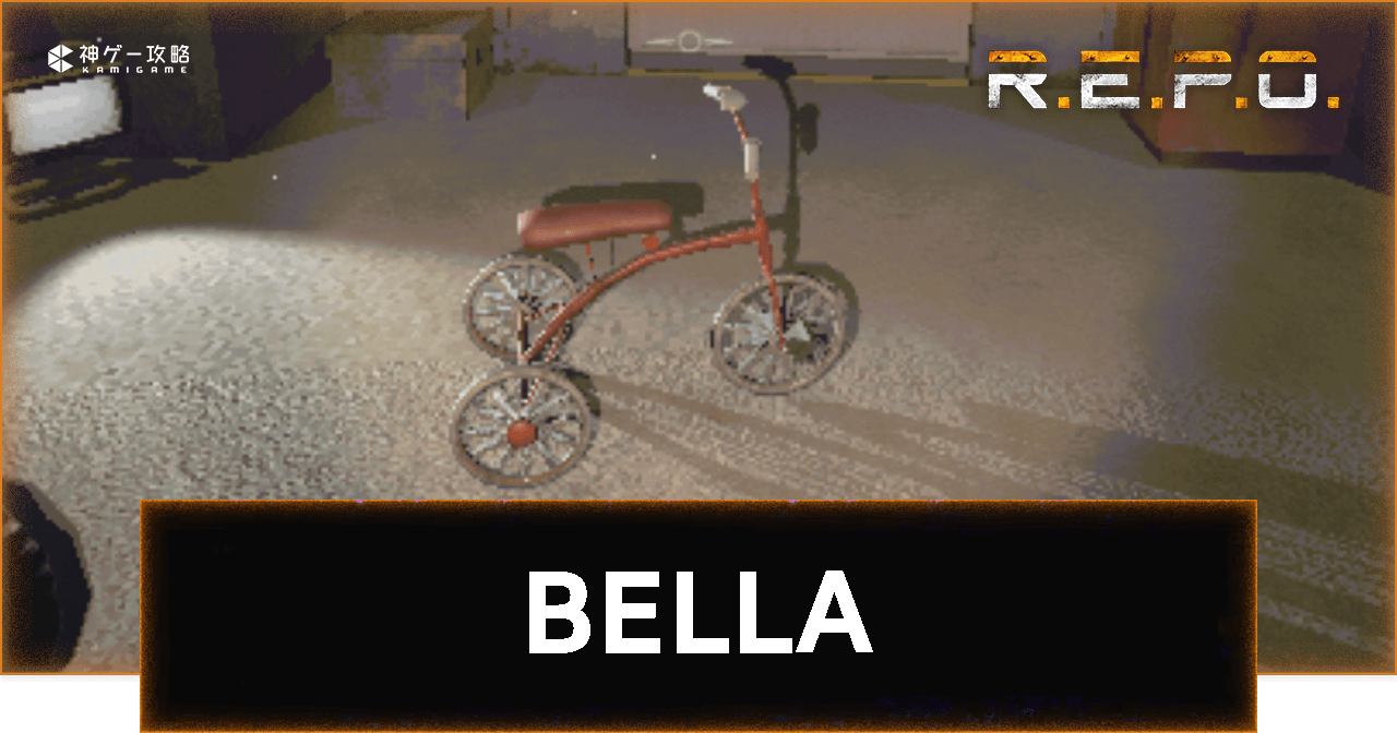 REPO(レポ/R.E.P.O.)の「BELLA(三輪車)」を解説。REPOのBELLAを倒す方法や対処法、ステータスや特徴、攻撃パターンについても掲載しています。