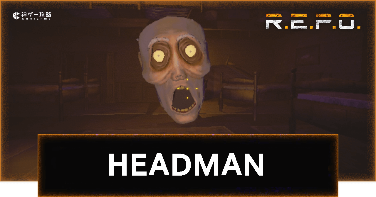 REPO(レポ/R.E.P.O.)の「HEADMAN(顔)」を解説。REPOのHEADMANを倒す方法や対処法、ステータスや特徴、攻撃パターンについても掲載しています。