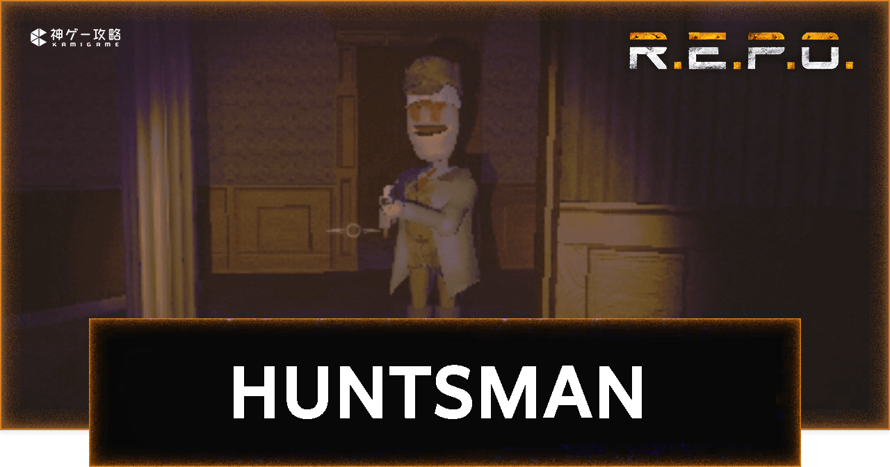 REPO(レポ/R.E.P.O.)の「HUNTSMAN(ショットガンおじさん)」を解説。REPOのHUNTSMANを倒す方法や対処法、ステータスや特徴、攻撃パターンについても掲載しています。