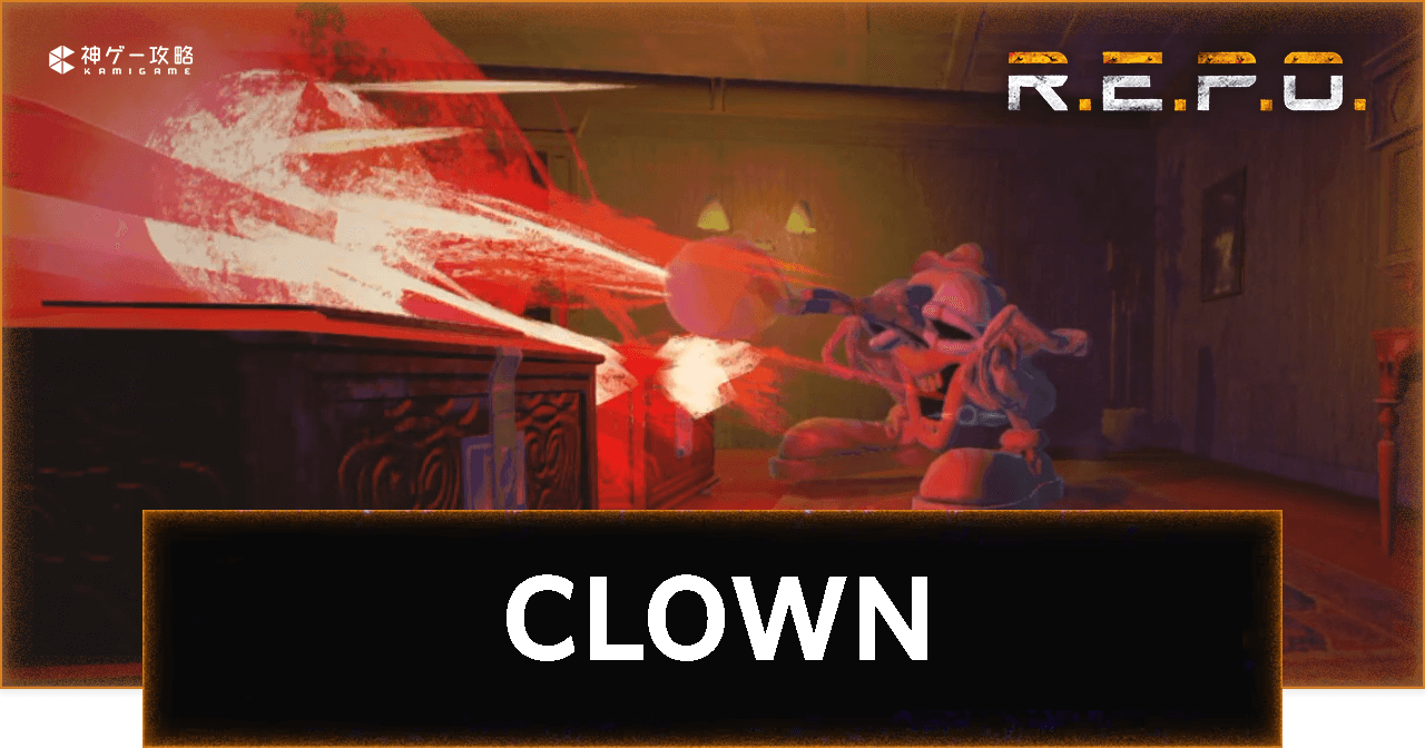 REPO(レポ/R.E.P.O.)の「CLOWN(ピエロ)」を解説。REPOのCLOWNを倒す方法や対処法、ステータスや特徴、攻撃パターンについても掲載しています。