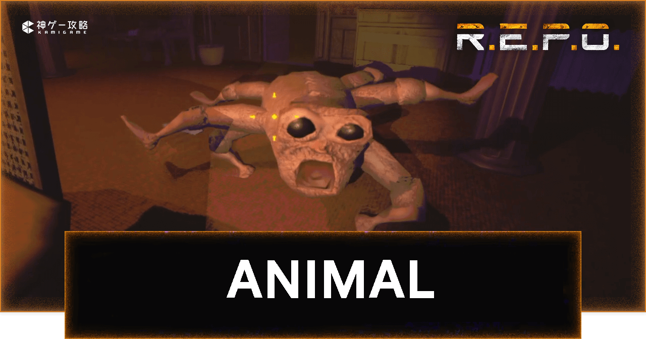 REPO(レポ/R.E.P.O.)の「ANIMAL(クモ)」を解説。REPOのANIMALを倒す方法や対処法、ステータスや特徴、攻撃パターンについても掲載しています。