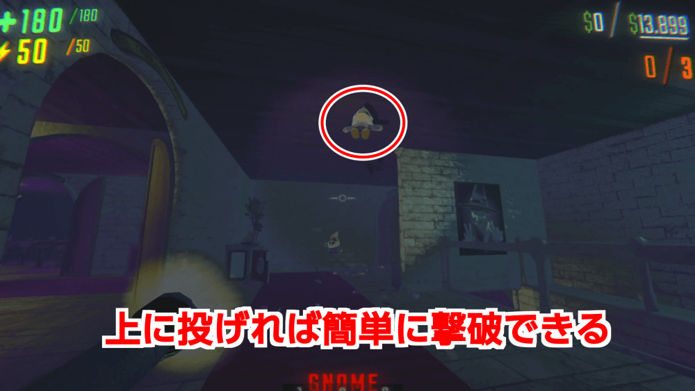 GNOMEが出現したら、すぐに1体ずつ投げて撃破しておくのがおすすめだ。放置していると、どんどん貴重品の価値を下げられて稼ぎが減ってしまうため、必ず撃破しておこう。