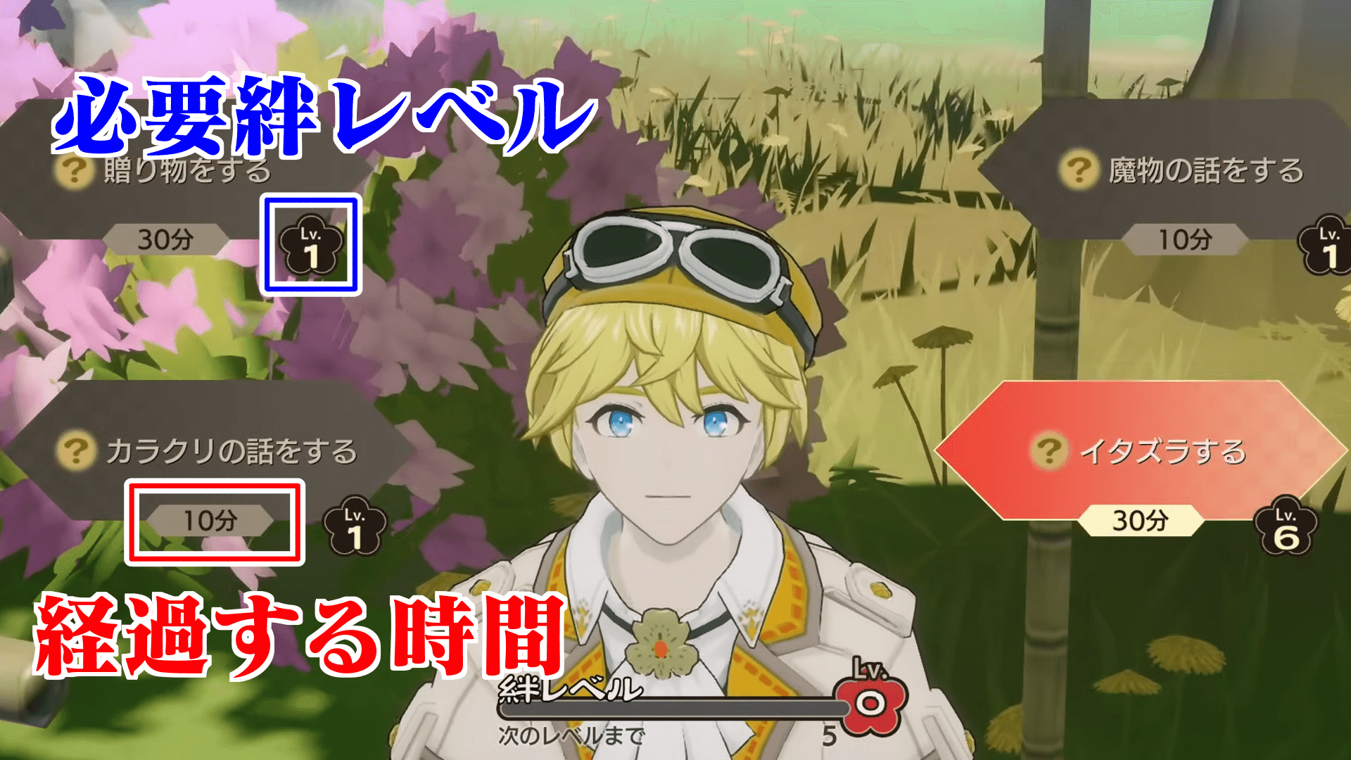 キャラと会話して絆レベルを上げられる