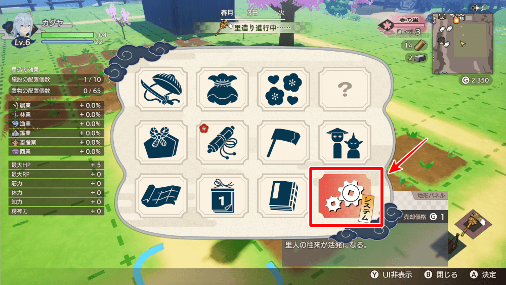 難易度を変更できるのは、里の中のみだ。一度フィールドに出ると変えられないため、里にいるときに忘れず設定しよう。