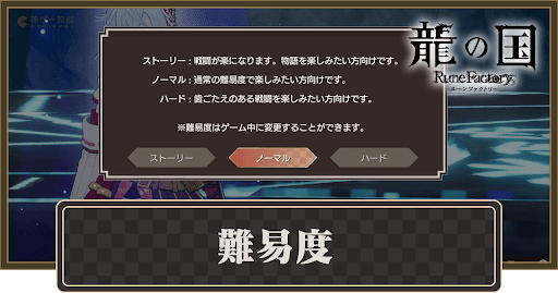 龍の国ルーンファクトリーの「難易度」を解説。龍ファク難易度による違いや、途中で難易度を変える方法について掲載しています
