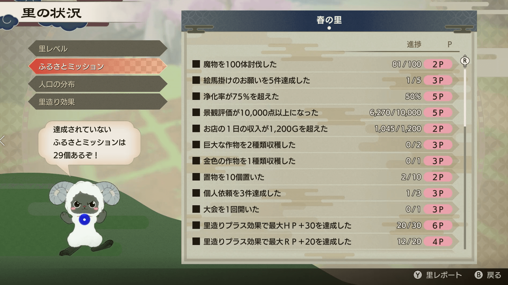 作物を大量に育てることでも、ふるさとミッションの進捗を大きく進められる。里ごとに季節の作物や花を育てて、ふるさとポイントを獲得しよう。