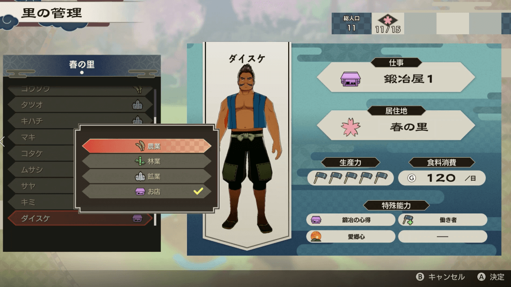 里レベルによっては、里人の新たな職業が追加される場合がある。新たな産業を始められるため、職業が追加されたら「里の管理」から仕事を設定しよう。