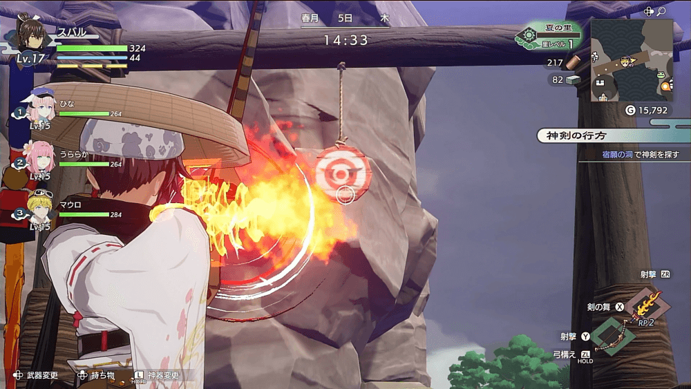 ヨイチの的はエリアの高い位置に設置されているため、探索時は画面上部に注目しつつ進めよう。他の収集要素と異なりマップに表示されないため、的を見かけたら必ず弓で破壊し、後回しにしないように。なお、1つの地方の的をすべて射抜くとヨイチが現れ、今の地方は終了だと教えてくれる。