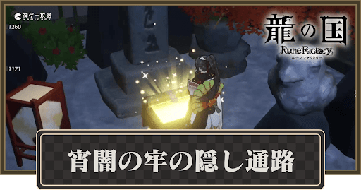龍の国ルーンファクトリーの「宵闇の牢の隠し通路」を解説。龍ファク隠し通路の場所やカエル石までの行き方に加え、入手できるアイテムについても掲載しています。