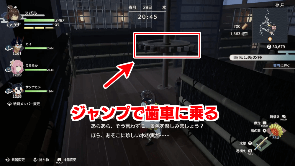 | 2 | 引き返して2つ目のスイッチ横にある歯車に乗る |