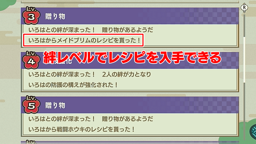 レシピは、世界の各地で発生する「アズマクエスト」の報酬で入手できる場合もある。アズマクエストは、各地方にある的あてや地蔵の掃除など様々なものがあるので、発生したら詳細を確認しておき、ストーリーと並行して進めるようにしておこう。