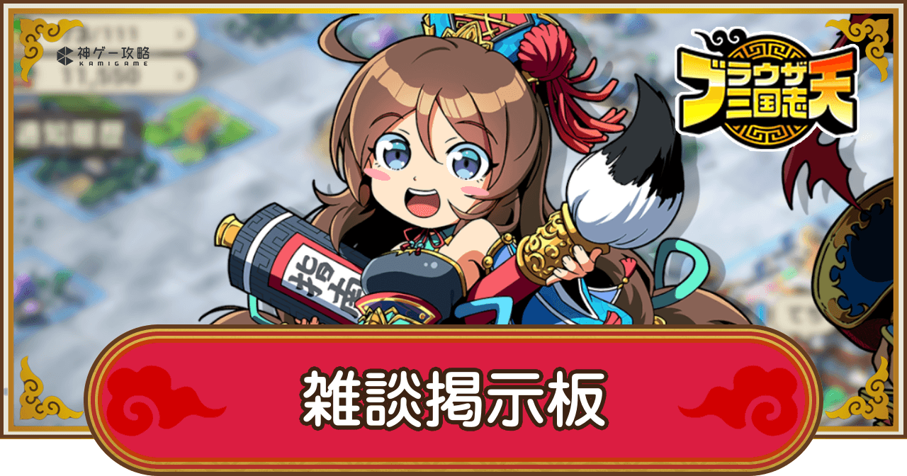 ブラウザ三国志天(ブラ天)の雑談掲示板です。ブラウザ三国志天の攻略のコツや情報交換、質問などの交流をする場としてご活用ください。