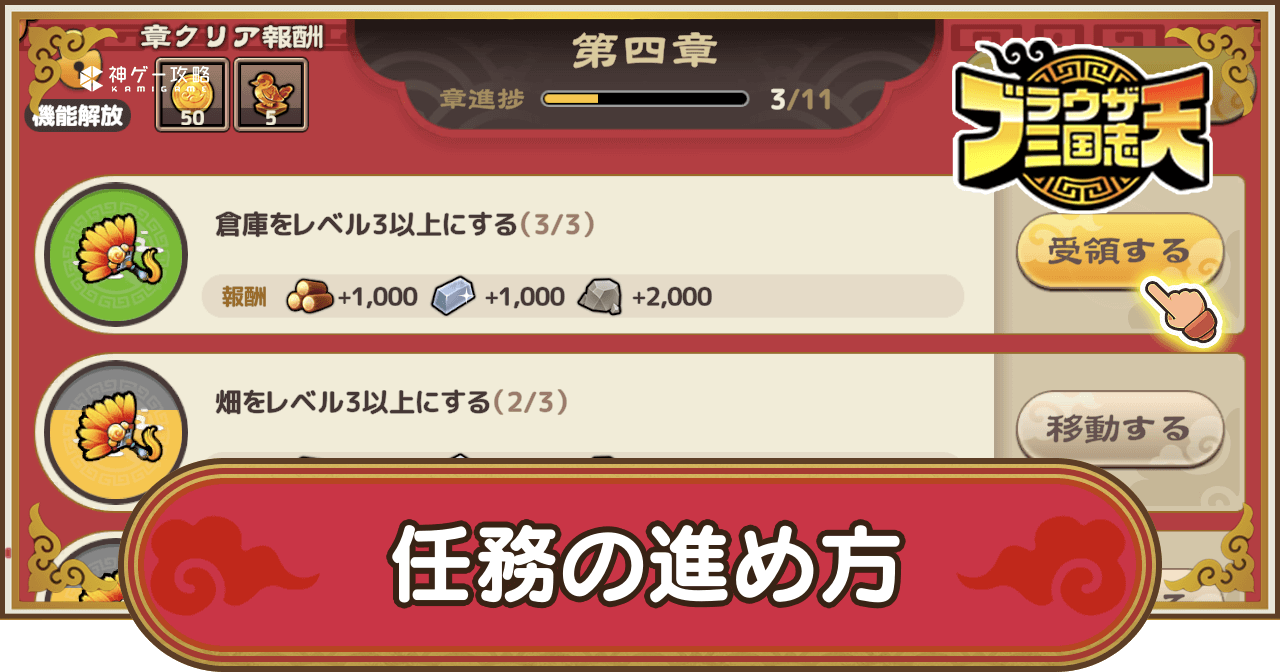 ブラウザ三国志天(ブラ天)の任務を紹介。メイン任務だけでなく、サブ任務や同盟任務についても解説しているため、ブラウザ三国志天で任務を進める際の参考にどうぞ。