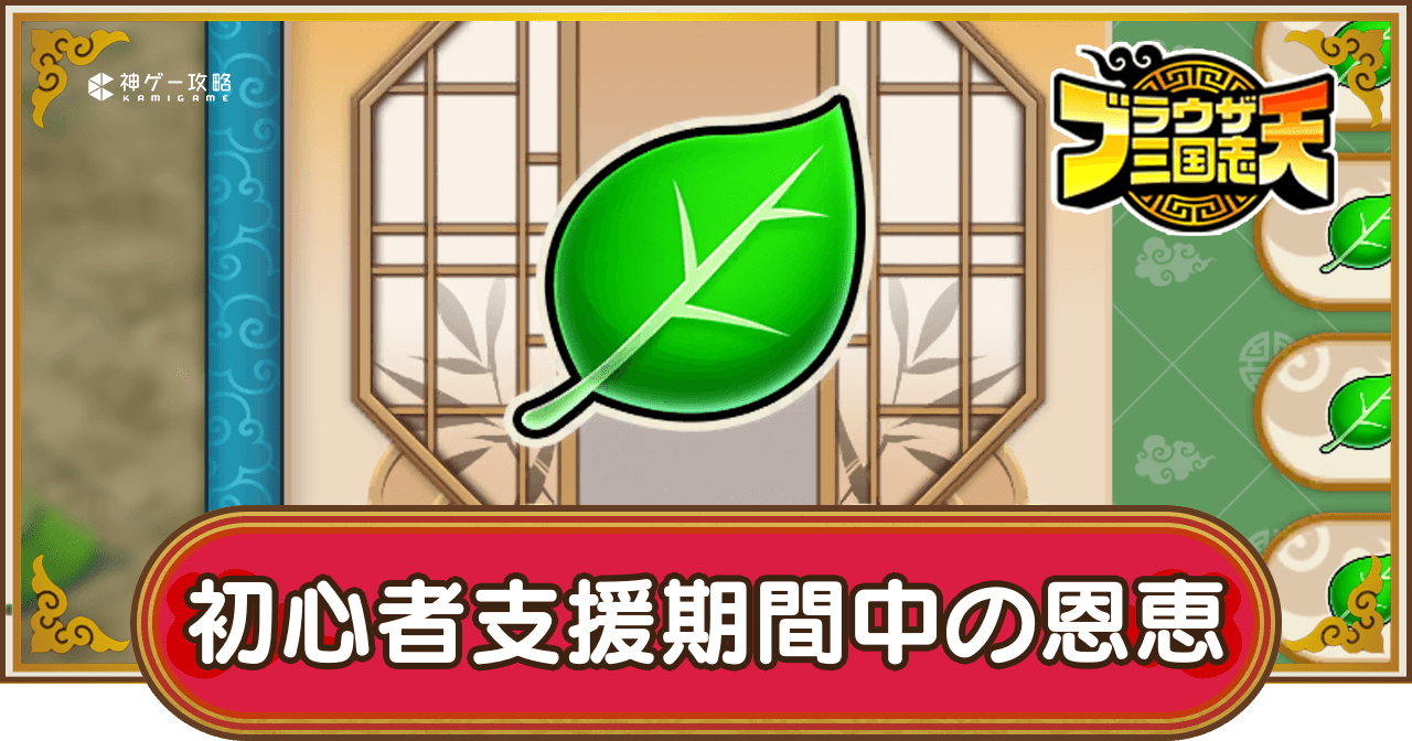 ブラウザ三国志天(ブラ天)の初心者支援期間中の恩恵とやるべきことを紹介。初心者支援の効果や期間切れたら気をつけるべきことについても掲載しているため、ブラウザ三国志天で初心者支援について知りたい時の参考にどうぞ。