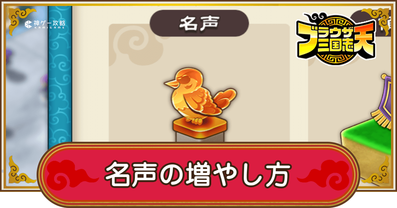 ブラウザ三国志天(ブラ天)の名声の増やし方を紹介。名声を上げる手段や名声を増やすメリットについても掲載しているため、ブラウザ三国志天で名声について知りたい時の参考にどうぞ。