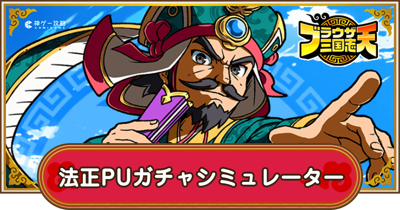 ブラウザ三国志天(ブラ天)の法正PUガチャシミュレーターを掲載。単発や10連、好きなキャラが出るまで回せるガチャシミュレーターを掲載しているので、ガチャを引く前の運試しにどうぞ。