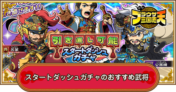 ブラウザ三国志天(ブラ天)のスタートダッシュガチャで引くべきおすすめの武将を紹介。優先して狙うべき武将はもちろん、引き直しの仕様についても掲載しているため、ブラウザ三国志天のスタートダッシュガチャについて知りたい際の参考にどうぞ。