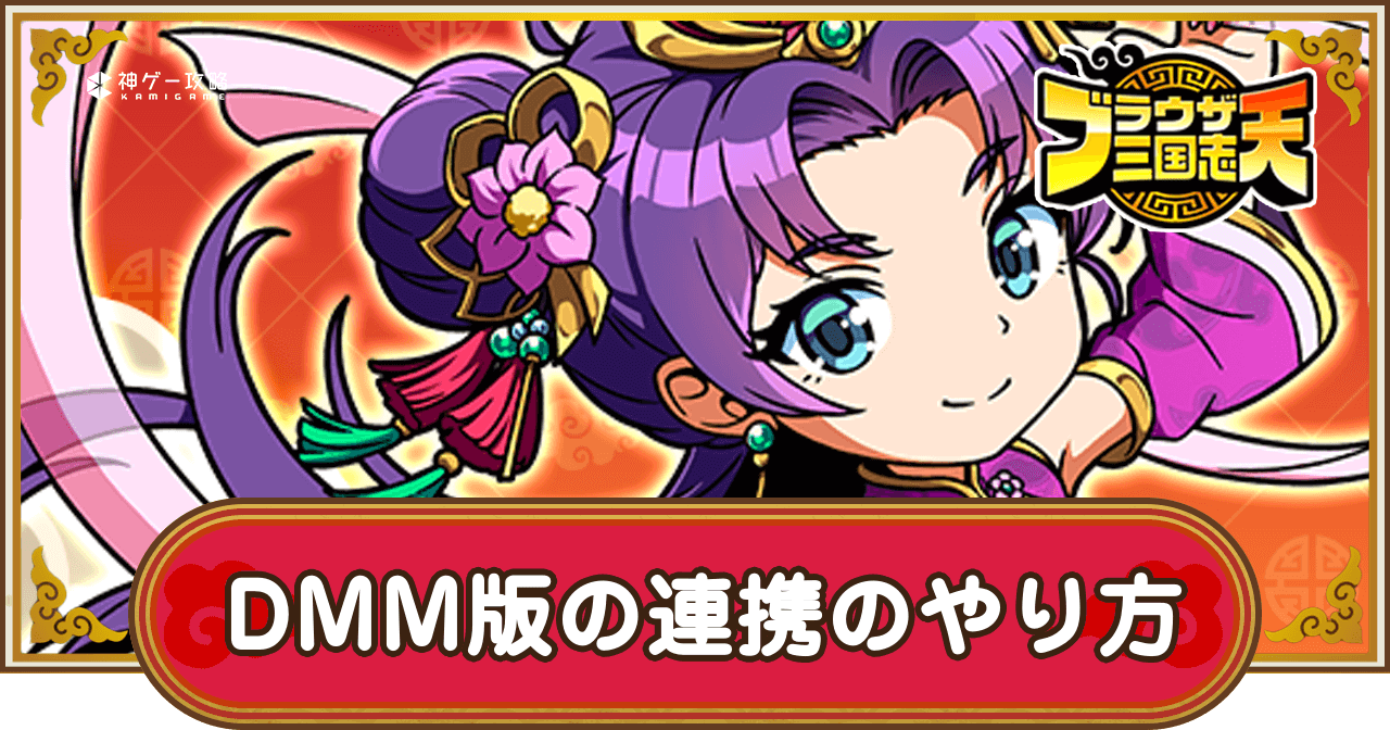 ブラウザ三国志天(ブラ天)のDMM版のデータ連携のやり方を紹介。DMM版の連携についてやモバイル版での登録手順、DMM版での登録手順についても掲載しているため、ブラウザ三国志天でDMM版のデータ連携のやり方を調べる際の参考にどうぞ。
