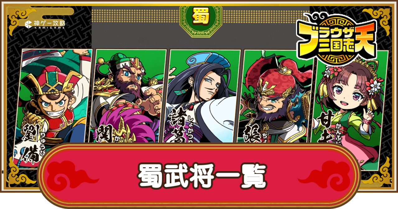 【ブラ天】蜀武将一覧と蜀陣営指南所の効果