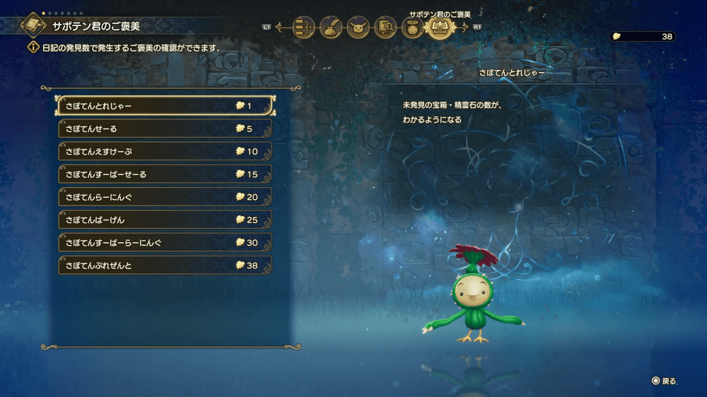 サボテン君の日記を集めると、追加能力が解放される。購入額の割引や経験値増加など、冒険を有利にする効果が常に発動するようになるため、新しいマップに着いたらサボテン君を見つけよう。
