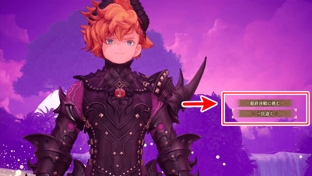 | 2 | 「最終決戦に挑む」を選ぶとラスボス戦へ |
