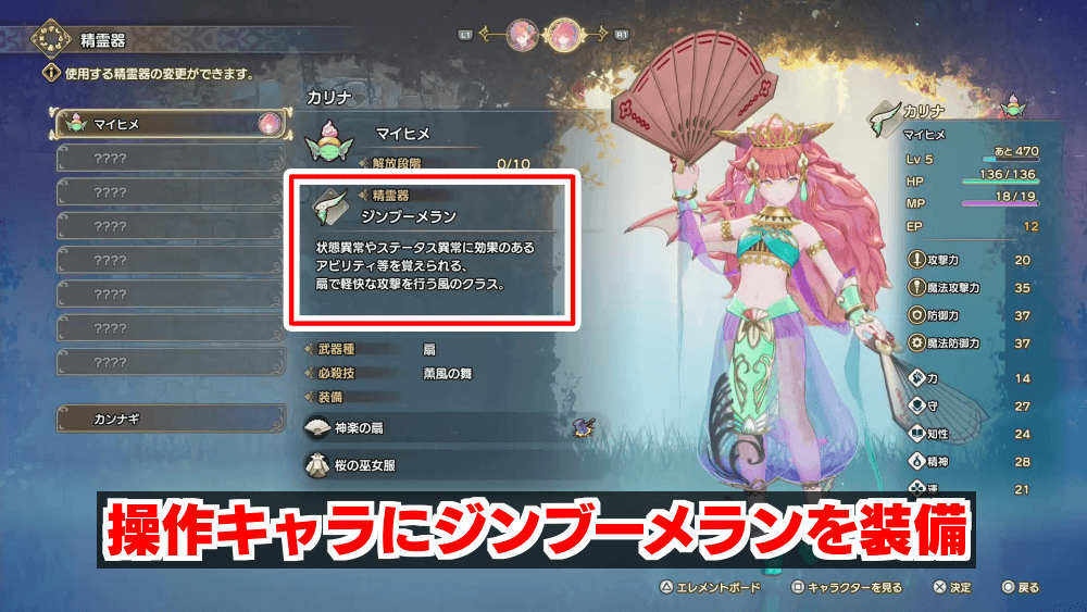 マンティスアント戦では、精霊器のジンブーメランで弱点を突けるため、自分で操作するキャラに精霊器を装備させよう。また、エレメントボードは2人とも解放しておき、ヴァルとカリナの両方が風属性の特技を使える状態にしておくと良い。