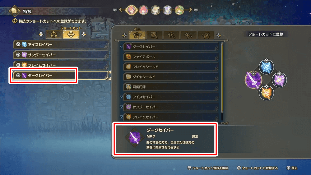 ディロフォロス戦は、近接キャラにダークセイバーを使って弱点を突こう。この時点では、まだ闇属性魔法の習得が難しいため、アビリティシードを持たせてダークセイバーを使うと良い。