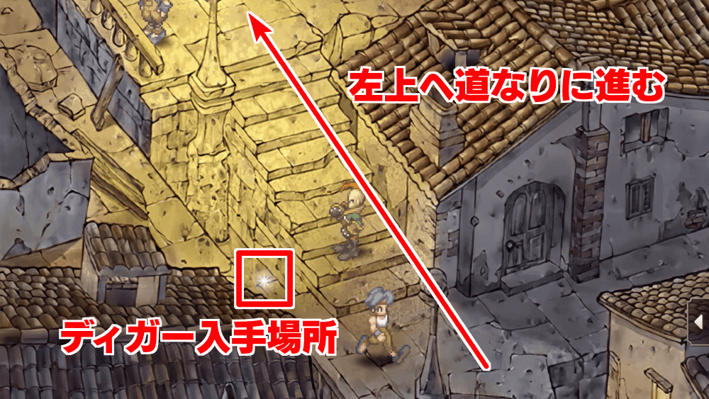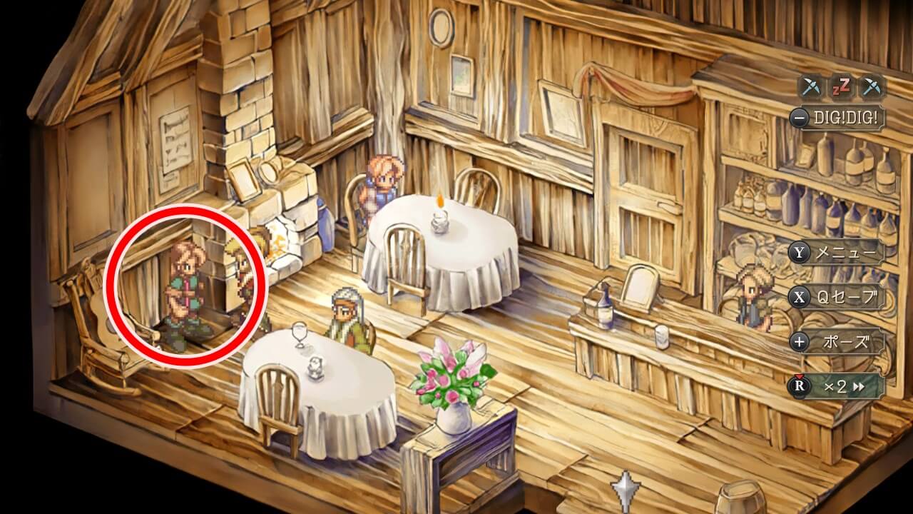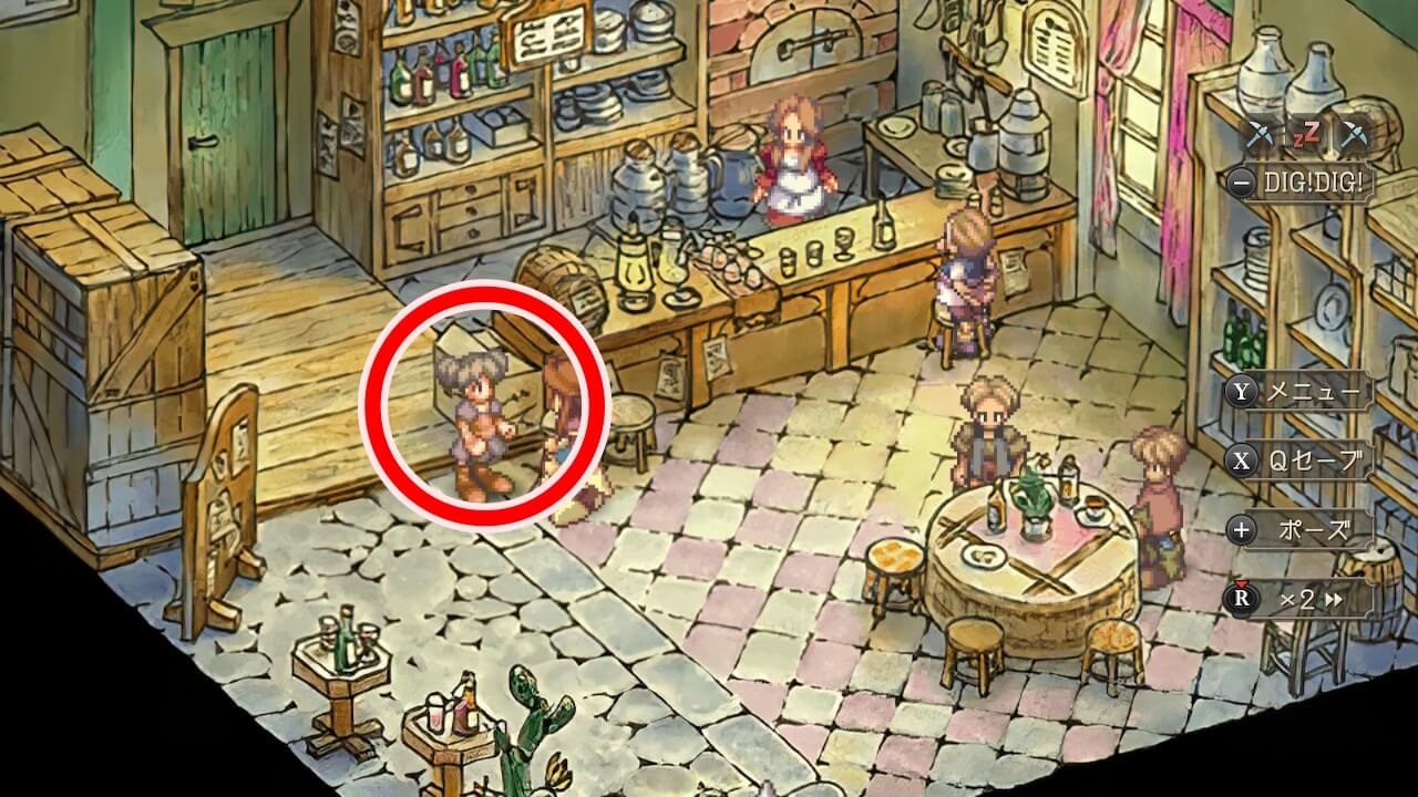 「DIG!DIG!ディガー」を行わせるには、まず発掘させたいキャラを選択しよう。ディガーはシナリオ中に特定のNPCへ話しかけると入手する場合がある。