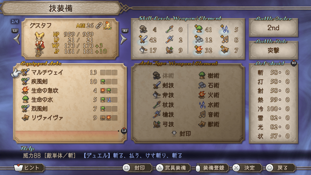 | スキルレベルの上げ方 | WPとJPの回復 |