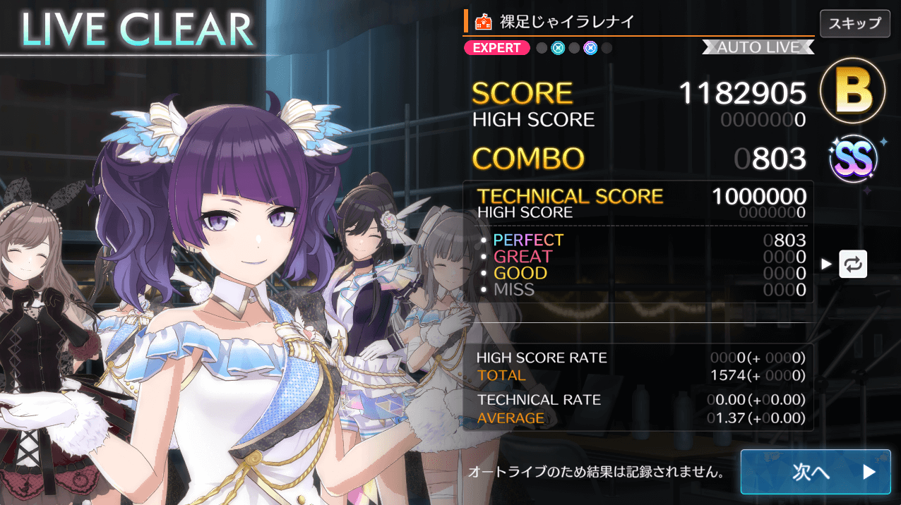 オートプレイではどの難易度であっても、ノーツを全てパーフェクトでさばいてくれる。ただし、スコア報酬やコンボ報酬は入手できず、結果も記録されないため、スコアや報酬がほしいときはスマホでのプレイがおすすめだ。