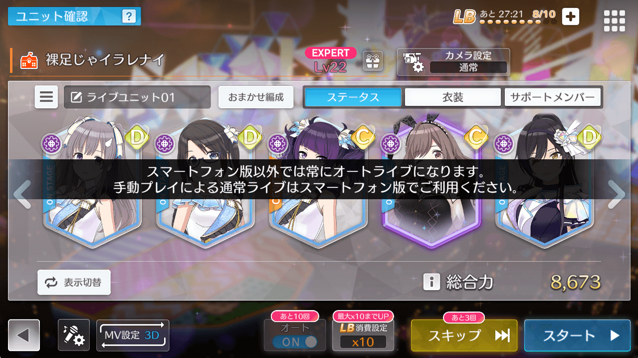 PC版はライブはオートでしかできない