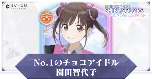 アイドルマスターシャイニーカラーズSONG for PRISM(シャニソン)のPキャラ【No.1のチョコアイドル】園田智代子を解説。評価はもちろん、アイドルスキルや潜在アイドルスキル、入手できる衣装や髪型についても掲載しているので、シャニソンをプレイする際の参考にどうぞ。