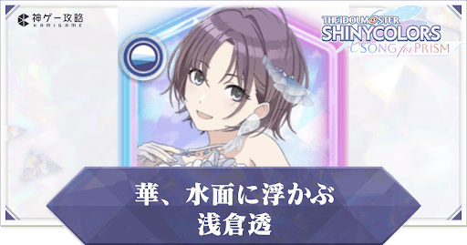 アイドルマスターシャイニーカラーズSONG for PRISM(シャニソン)のPキャラ【華、水面に浮かぶ】浅倉透を解説。評価はもちろん、アイドルスキルや潜在アイドルスキル、入手できる衣装や髪型についても掲載しているので、シャニソンをプレイする際の参考にどうぞ。