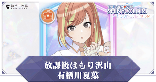 アイドルマスターシャイニーカラーズSONG for PRISM(シャニソン)のPキャラ【放課後はもり沢山】有栖川夏葉を解説。評価はもちろん、アイドルスキルや潜在アイドルスキル、入手できる衣装や髪型についても掲載しているので、シャニソンをプレイする際の参考にどうぞ。