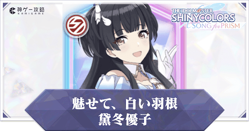アイドルマスターシャイニーカラーズSONG for PRISM(シャニソン)のPキャラ【魅せて、白い羽根】黛冬優子を解説。評価はもちろん、アイドルスキルや潜在アイドルスキル、入手できる衣装や髪型についても掲載しているので、シャニソンをプレイする際の参考にどうぞ。