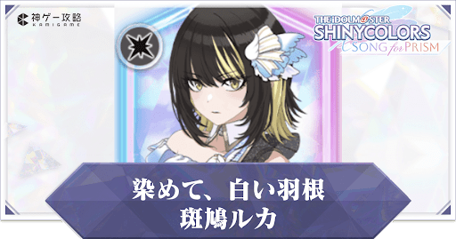 アイドルマスターシャイニーカラーズSONG for PRISM(シャニソン)のPキャラ【染めて、白い羽根】斑鳩ルカを解説。評価はもちろん、アイドルスキルや潜在アイドルスキル、入手できる衣装や髪型についても掲載しているので、シャニソンをプレイする際の参考にどうぞ。