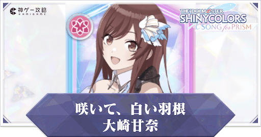 アイドルマスターシャイニーカラーズSONG for PRISM(シャニソン)のPキャラ【咲いて、白い羽根】大崎甘奈を解説。評価はもちろん、アイドルスキルや潜在アイドルスキル、入手できる衣装や髪型についても掲載しているので、シャニソンをプレイする際の参考にどうぞ。