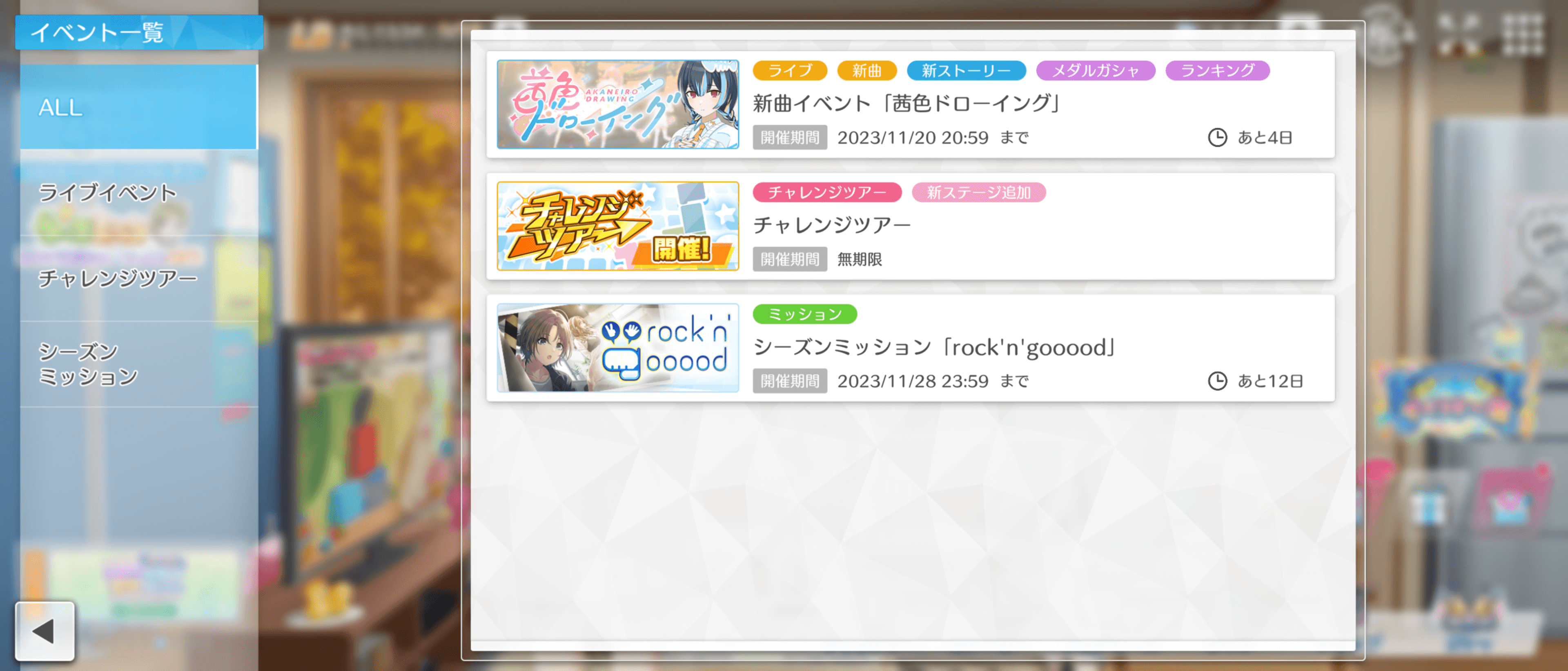 期間限定でやるべきことでは、開催されているイベントに積極的に参加する。シャニソンでは定期的にイベントが開催されており、報酬も期間限定のものが多いため、忘れず参加して多くの報酬をゲットしよう。