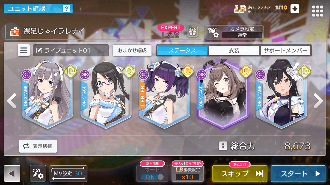 ライブでは、一日に決まった回数だけスキップとオートができる。簡単にLBを消費しつつアイテムも入手できるため、ログインしたらなるべくスキットオートは使い切るのがおすすめだ。