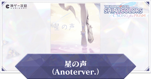 アイドルマスターシャイニーカラーズSONG for PRISM(シャニソン)の収録曲「星の声(Anoterver.)」の楽曲情報を紹介。アーティストはもちろん、入手方法やノーツ数、難易度ごとの楽曲レベルについても掲載しているので、シャニソンをプレイする際の参考にどうぞ。