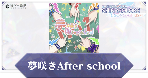 アイドルマスターシャイニーカラーズSONG for PRISM(シャニソン)の収録曲「夢咲きAfter school」の楽曲情報を紹介。アーティストはもちろん、入手方法やノーツ数、難易度ごとの楽曲レベルについても掲載しているので、シャニソンをプレイする際の参考にどうぞ。