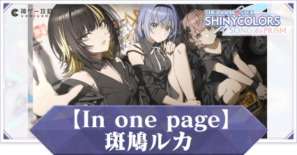 アイドルマスターシャイニーカラーズSONG for PRISM(シャニソン)のサポートキャラ【In one page】斑鳩ルカを解説。評価はもちろん、サポート効果や潜在効果についても掲載しているので、シャニソンをプレイする際の参考にどうぞ。