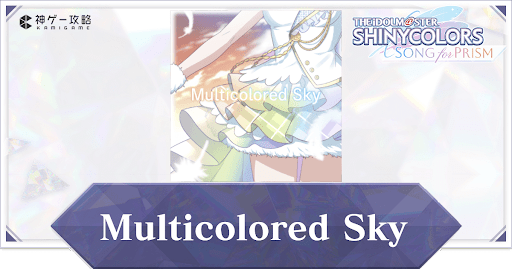 アイドルマスターシャイニーカラーズSONG for PRISM(シャニソン)の収録曲「Multicolored Sky」の楽曲情報を紹介。アーティストはもちろん、入手方法やノーツ数、難易度ごとの楽曲レベルについても掲載しているので、シャニソンをプレイする際の参考にどうぞ。
