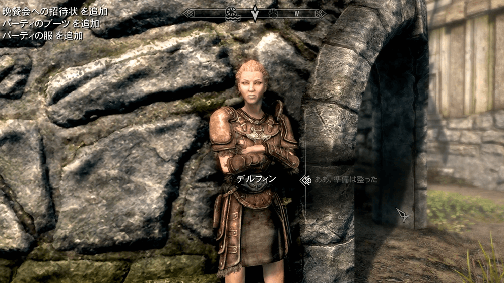 マップ 外観 マルボーンと別れたら一度城外に出て、馬屋にいるデルフィンと会う。「晩餐会への招待状」「パーティの服」「パーティのブーツ」を貰えるので、その場でパーティの服とブーツを装備して大使館へ出発しよう。